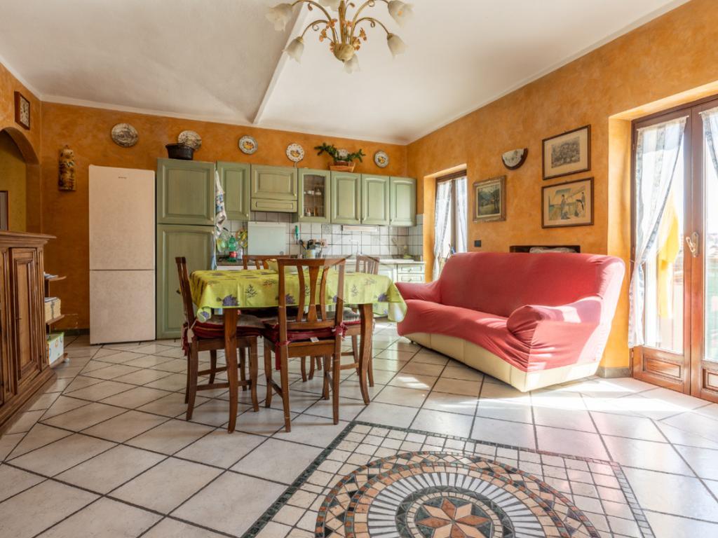 La zona giorno è ampia e luminosa grazie alla presenza di una finestra e due portefinestre che danno accesso al balcone.