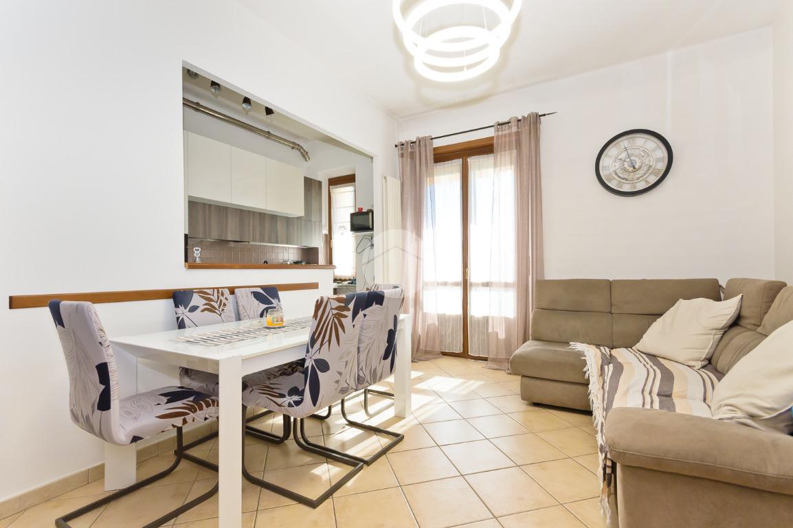 Il soggiorno, ampio e luminoso, è arricchito da un cucinotto e da una porta finestra che permette l’accesso diretto al balcone.